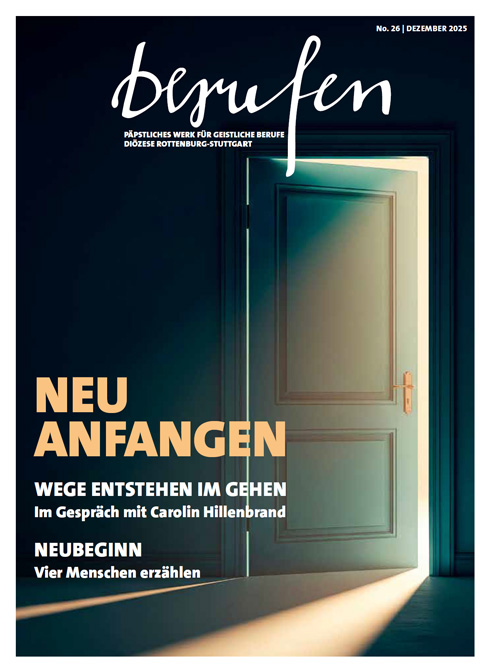 Das Magazin „berufen“ des Päpstlichen Werks für Geistliche Berufe (PWB) in der Diözese Rottenburg-Stuttgart will Einblicke geben in das Berufungsgeschehen. Es lässt junge Menschen mit ihren Berufungsgeschichten zu Wort kommen, stellt Menschen vor, die im pastoralen Dienst tätig sind oder einer Ordensgemeinschaft in unserer Diözese angehören und bietet aktuelle Informationen über das PWB in unserer Diözese sowie die Veranstaltungen der Diözesanstelle Berufe der Kirche.