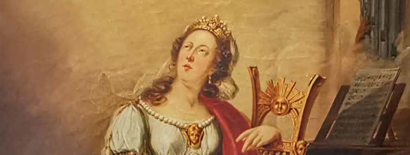 Die heilige Cäcilia ist eine Märtyrerin und die Patronin der Musik. Sie drückt demnach in doppelter Weise die Gemeinschaft zwischen Gott und den Menschen aus. In ihrem Martyrium zeigt sich die enge und treue Bindung zu Jesus Christus. Ihr Leben und ihr Sterben widmet sie ganz Gott. Bis zum Äußersten, dem Tod, legt sie Zeugnis für ihren Glauben ab und übt damit eine große Faszination auf ihre Mitmenschen aus. Die Musik, ihr Patronat, schlägt ebenfalls eine Brücke der Verbindung zwischen Menschlichem und Göttlichem. Sie vermag Dinge auszudrücken, für welche der Mensch vielleicht nicht immer Worte oder angemessene Ausdrucksweisen finden kann. Sie besitzt göttliche und himmlische Eigenschaften, die die Grenzen des Irdischen überschreiten können.